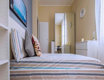 La stanza queen è di 14,95 m² all'interno di un appartamento condiviso con 3 bagni, lavatrice, televisione e riscaldamento centrale. L'appartamento si trova al 1° piano ed è dotato di ascensore.