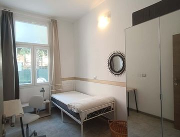Stanza n. 2, singola con armadio e scrivania in appartamento dove ci sono quattro camere da letto indipendenti e due bagni attrezzati.
