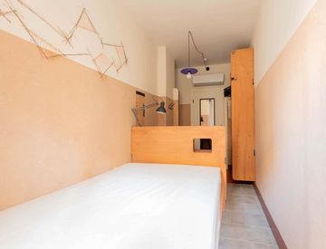 Welcome to your new home in Milan! This fully furnished private room (9.7 m²) is designed for comfort, featuring a full-size bed, desk, chair, closet, and private sink with a mirror. The bathroom is shared, but having your own sink adds extra convenience. High-speed WiFi is included.