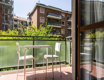 La Stanza è di 18 m² con accesso al balcone e dispone di letto Queen Size. L’appartamento offre riscaldamento, Wi‑Fi, forno, lavastoviglie e lavatrice, oltre a due bagni per maggiore comfort.