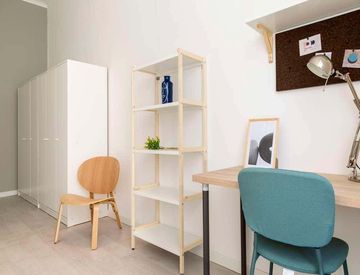 Of about 18 sqm with a one and a half bed and a work station, A private bathroom complete the opportunity. With wifi, dishwasher, washing machine.