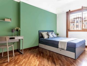 Wonderful bright single room in Milan with a window and air conditioning. The room includes a French bed, a bedside table, a desk with a lamp, and a triple wardrobe with internal drawers. An ideal solution for international university students and young professionals!