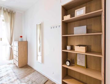 Points forts: chambre de 12 m² avec balcon et accès à des salles de bains partagées. L'appartement propose Wi‑Fi, télévision, lave‑linge, lave‑vaisselle, four et chauffage.