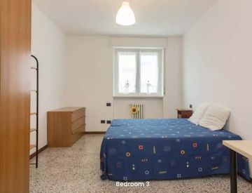 Il soggiorno è molto ampio con un divano a L, un tavolo che si può allungare in caso di necessità, un televisore, un mobile a muro con diverse ante e balcone che si affaccia sul giardino condominiale. Abbinato all'alloggio e compreso nell'affitto l'utilizzo di un box privato dove potere collocare motorino e/o bicicletta. Nello stabile sono presenti due ascensori e l'appartamento è dotato di porta blindata e videocitofono.