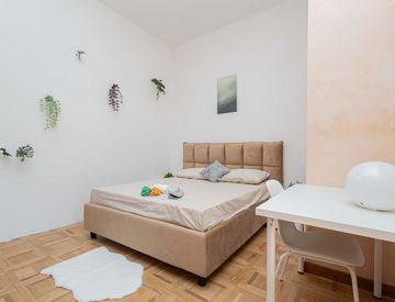 Ampia stanza arredata con letto e scrivania in appartamento condiviso con 6 camere e 2 bagni, dotato di una spaziosa cucina comune. L’appartamento si trova in Via Giovanni Battista Pergolesi, in una zona centrale e ben servita, e ben collegata....