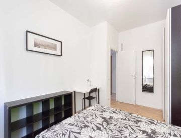Questa Stanza di 17,71 m² dispone di un letto Queen Size e si trova in un appartamento dotato di lavatrice, lavastoviglie, forno, riscaldamento e Wi‑Fi. L'appartamento misura 200 m² e offre tre bagni per maggiore comodità.