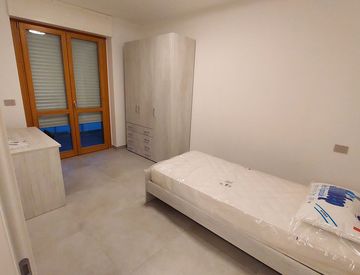 In stabile di nuova costruzione, affittiamo stanze singole in un appartamento dotato di tutti i comfort. Le stanze sono arredate con letto singolo, scrivania e guardaroba. L'appartamento comprende una zona giorno condivisa, due bagni (di cui uno con lavatrice) e due terrazzi a cui tutte e tre le stanze hanno accesso.