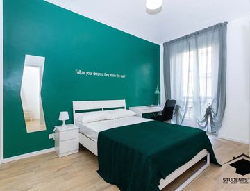 L’appartamento completamente ristrutturato è situato nel quartiere Cenisia al terzo piano ed è composto da 6 stanze singole, 2 bagni e una zona living con cucina completamente accessoriata con lavastoviglie e doppio frigo. È presente un grazioso angolo divano con assistente vocale.