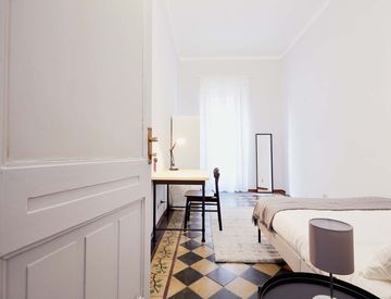 More than an apartment, this is simply a very big, comfy house. You will find 2 bathrooms on each floor, with some having the shower separated from the toilet for a better convenience in the morning. Three fully-equipped kitchens, all of them with an oven, dishwasher and all the appliances. Underground, two study rooms for 6 people each, a laundry room and a big living room. As an extra, a 150 sqm private garden!