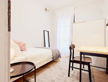 Our rooms come fully furnished with a premium mattress, a wardrobe, a warm carpet, a desk and chair. Of course, pillows, bedsheets and small items such as a bed-side table and a small lamp are always included. Depending on your needs, you can choose a single or a double bed, a balcony or even a shared or private terrace.