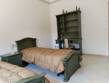 L’appartamento è al piano terra e si compone di 3 camere da letto, due singole e una doppia, 2 servizi con doccia, cucina abitabile da sfruttare come zona comune, balcone su giardino e balcone su affaccio interno.
