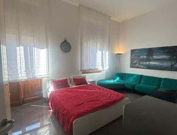 Spacious room in Via Giordano Bruno, located close to Campo di Marte train station, near Piazza Beccaria. It has a double bed (160x200 cm), a wardrobe, a desk, a bedside table and a lamp. It also has its own lock, terrace, AC and central heating. it has all the necessary space for international studuents *Bedding is not included, only a mattress cover is provided.