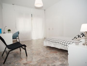 Zona Bellariva, posizione strategica e ambita, si affitta una bellissima suite Stanza Semplice ristrutturata appositamente per offrire comfort e comodità ai nostri studenti. La stanza è dotata di attacco TV, letto singolo, armadio 3 ante, scrivania con portaoggetti, comodino, tendaggi, specchio, divanetto.
