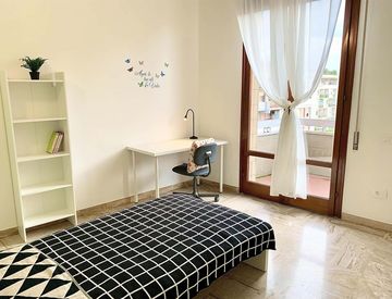 Situato al sesto piano, molto luminoso e spazioso. 170 mq di superficie. È composto da cucina e ampia zona giorno, 2 Bagni e 7 stanze singole, di cui 6 con balcone + ampia terrazza comune. L'appartamento è ottimamente ristrutturato in funzione di tutto ciò che occorre ai nostri studenti. Dotato di WI-FI, lavatrice, cucina equipaggiata....