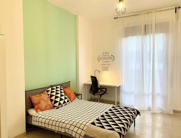 Situato al sesto piano, molto luminoso e spazioso. 170 mq di superficie. È composto da cucina e ampia zona giorno, 2 Bagni e 7 stanze singole, di cui 6 con balcone + ampia terrazza comune. L'appartamento è ottimamente ristrutturato in funzione di tutto ciò che occorre ai nostri studenti. Dotato di WI-FI, lavatrice, cucina equipaggiata....