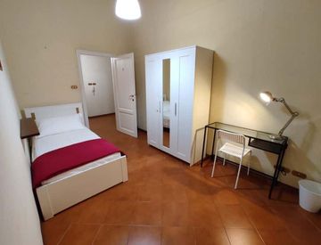 Private room in Campo di Marte, located in Viale Dei Mille. It has a single bed (90x200 cm), a 3doors wardrobe, a desk, a bedside table and a lamp. It also has its own lock and central heating. International students will find everything they need to live comfortably in here. *Bedding is not included, only a mattress cover is provided.