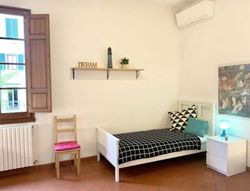 Situato al primo piano, luminoso e spazioso. 100 mq di superficie. È composto da cucina abitabile, 1 Bagno e 3 stanze singole. L'appartamento è ottimamente ristrutturato in funzione di tutto ciò che occorre ai nostri studenti. Dotato di WI-FI, lavatrice, forno e forno a microonde, cucina equipaggiata.
