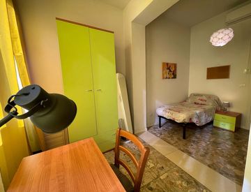 Spacious, bright and comfortable room, composed of a bed, a big wardrobe, big bookshelf, a desk and chair.