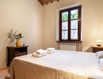 Accogliente e luminosa, con arredi tipici toscani. Una camera matrimoniale e una zona giorno con divano letto, TV, microonde, bollitore, tostapane e minibar. Bagno con doccia e aria condizionata.