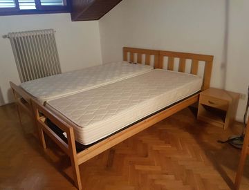 Stanza dotata di due letti singoli uniti (uso singolo), scrivania, armadio.