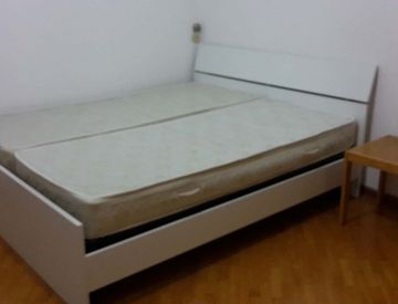 The apartment is in good condition; the bedroom floors are wooden.
