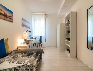 The apartment has just been renovated and consists of 7 comfortable Single Rooms, 2 Bathrooms with Shower and a very large fully equipped Kitchen/Living Room Open space. The furnishings are in a Modern Minimal style and every room is studied in detail.