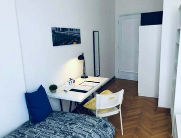The apartment has just been renovated and consists of 6 comfortable Single Rooms, 2 Bathrooms with Shower, and a very large fully equipped Kitchen. The furnishings are in a Modern Minimal style, with each room meticulously designed.