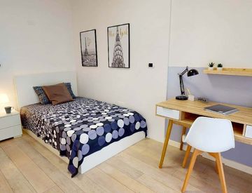 The apartment consists of 3 spacious rooms, one of which has a private bathroom, 1 shared bathroom with a shower, and a functional shared kitchen.