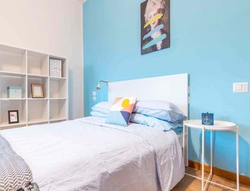 La stanza misura 20,69 m² ed è parte di un appartamento con 3 stanze e 2 bagni; il letto è queen size. Sono presenti Wi-Fi, riscaldamento e elettrodomestici come forno e microonde.