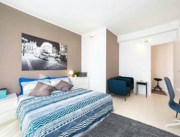 The apartment is very large and bright and it is made up of 6 Huge Single Rooms, an Equipped Kitchen with Terrace, 2 Bathrooms with Shower, a closet and a Living Relax Hall.