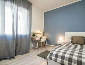 The apartment has been completely renovated and furnished in a Modern Minimal style. It is located in an independent villa, on two floors. On the first floor there is a large Kitchen - Living Room, 1 Bathroom with Shower and 5 Single Rooms.