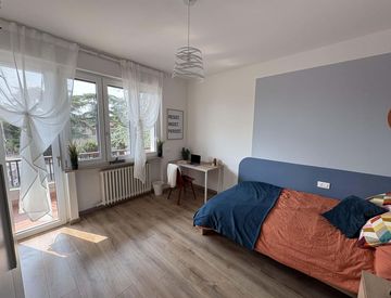 In the Borgo Trento area, a strategic and sought-after location, we rent a beautiful single room Stanza Semplice renovated specifically to offer comfort and convenience to our students. The room is equipped with a double bed, 3-door wardrobe, desk with storage, bedside table, curtains, mirror, shoe rack, bookcase.