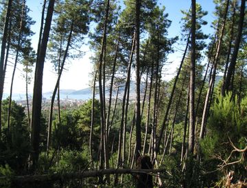 In posizione collinare terreno di circa 60.000 mq diviso in due lotti, il più esteso, ha una superficie complessiva di mq. 50.595 ivi compresa l'area di sedime di due fabbricati rurali di piccole dimensioni ed il secondo di complessivi mq. 8700.
