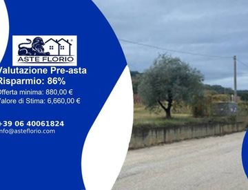 Riferimento: 4516777 Via Foro snc, 66010 Ari Chieti Lotto: 4 Terreni, complessiva estensione di mq. 370, suddivisi in due porzioni: una della superficie di mq. 70 costituita dalla particella f. 1 n. 309, l’altra di mq. 300, costituita dalle particelle f. 1 n.. . Data di vendita: 24/03/2026 12:00 Offerta minima: € 880 Valore di stima 6.660, 00 Studio di Fattibilità Pre-Asta Offriamo consulenza legale completa per l'acquisto tramite asta giudiziaria....