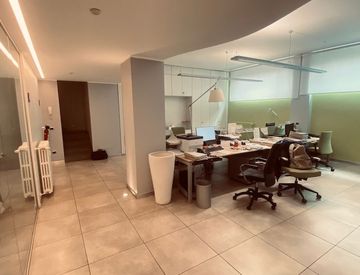 Estremamente luminoso grazie alla doppia esposizione e alle ampie finestre affacciate sul verde condominiale, l’immobile è attualmente organizzato con un ampio open space e due uffici separati da eleganti vetrate.