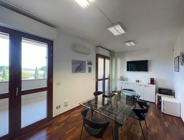 L'ufficio è dotato di un ampio bagno e di terrazzi che offrono un'ottima vista e la possibilità di godere di momenti di pausa all'aperto. L'impianto di aria condizionata caldo/freddo garantisce un comfort ottimale durante tutto l'anno. Il pavimento in parquet aggiunge un tocco di eleganza e professionalità all'ambiente.