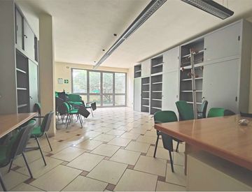 Gli spazi sono già parzialmente arredati e attrezzati con postazioni operative, tavoli, sedute, scaffalature e corpi illuminanti, rendendo l'ufficio immediatamente operativo senza particolari investimenti.