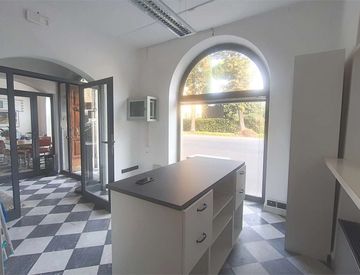 Posizionato fronte strada piano terra su viale con elevatissimo passaggio automobilistico e quindi con importante visibilità, proponiamo luminosa porzione di una più ampia unità immobiliare uso ufficio in ottimo stato di cura e di manutenzione. La suddetta porzione consiste nell'utilizzo esclusivo di un'area 'open-space' di circa 30 mq. con ampia vetrina, oltre all'utilizzo a comune con altro studio dell'ingresso/sala d'attesa, del servizio igienico...