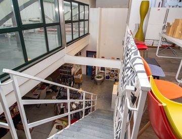 Dal soppalco, inoltre, si accede comodamente anche a una terrazza, ideale per momenti di relax, pause lavoro o incontri aziendali informali.
