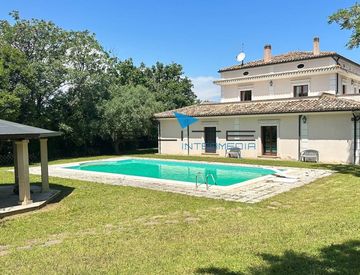Al centro del giardino c'è una splendida piscina di grandi dimensioni con attiguo portico, perfettamente integrata nell'ambiente circostante che rappresenta il luogo ideale per rinfrescarsi durante le calde giornate estive.