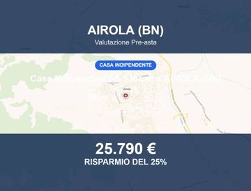 Casa indipendente in asta a AIROLA (BN) – Via Caudisi 50 (CAP 82011) L'abitazione si trova in Airola (BN), in via Caudisi. Si tratta di una casa indipendente di tipo in linea, sviluppata su due livelli, edificata prima del 1967 e successivamente oggetto di restauro nel 1979. Superficie e distribuzione interna L'immobile ha una superficie catastale totale di 134 mq ed è composto da ingresso, cucina, salotto, bagno e sottoscala al piano terra. Al piano...