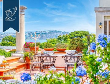 Sviluppata su due livelli in posizione dominante affacciata sul mare, la villa offre un'ampia metratura interna di 310 mq e comprende un grande parco verde di 6500 mq. Un prezioso terrazzo delimitato da colonne antiche regala una vista mozzafiato sul mare, mentre un secondo affaccio panoramico si apre verso il centro storico della città.