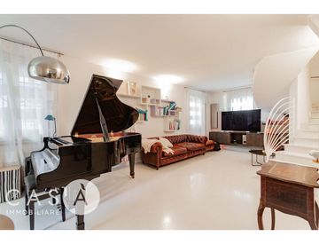Al piano terra si trova la zona giorno composta da soggiorno, cucina, sala da pranzo, lavanderia e un bagno, mentre al primo piano la zona notte caratterizzata da 3 camere da letto, uno studio, una cabina armadio e due bagni.