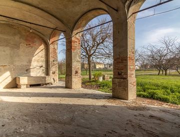 L'altra parte dell'immobile presenta 2 grandissimi portici, una attrezzeria (stalla) con MERAVIGLIOSI ARCHI interni e un fienile al 1 piano.
