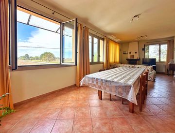 piano primo: ingresso, cucina, ampia sala con terrazzo di 60mq vista campagna, 5 camere da letto matrimoniali e bagno.