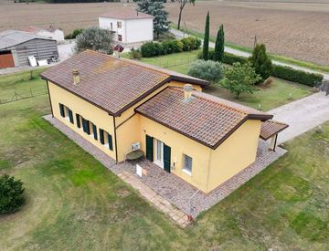 Denore, immersa nella campagna ferrarese ed a breve distanza dalla città, vendiamo splendida villa in condizioni pari al nuovo, interamente disposta al pian terreno e dotata di comodi spazi.