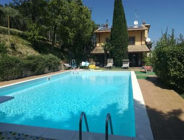 All'esterno la proprietà è arricchita da una splendida piscina privata e da un contesto naturale che garantisce privacy, relax e una vista panoramica unica sulle colline romagnole.