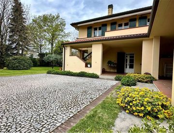Imola - zona Villaggio (Via 1° Maggio), proponiamo una porzione di villa bifamiliare di 200 mq immersa nel verde, con parco esclusivo di 2.400 mq con da alberi secolari ad alto fusto.