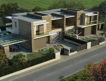 Mirandola. Villa bifamiliare moderna con 400 mq di giardino privato e ampio porticato + piscina - composta da: ingresso -soggiorno grande con vetrate sul giardino - portico di 30 mq con vista piscina - cucina abitabile - 3 camere da letto - 2 bagni - 2 terrazzoni di 20 + 25 mq - ripostiglio/lavanderia - posto auto e garage.
