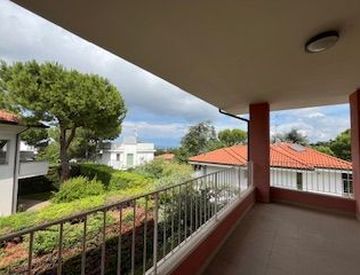 Al piano superiore, due camere da letto aggiuntive e uno studio offrono spazio sufficiente per tutta la famiglia. Il balcone e l'ampia terrazza con vista mare regalano panorami mozzafiato, ideali per cene all'aperto o momenti di relax. Il giardino piantumato e pavimentato circonda la proprietà, offrendo un'oasi di tranquillità.